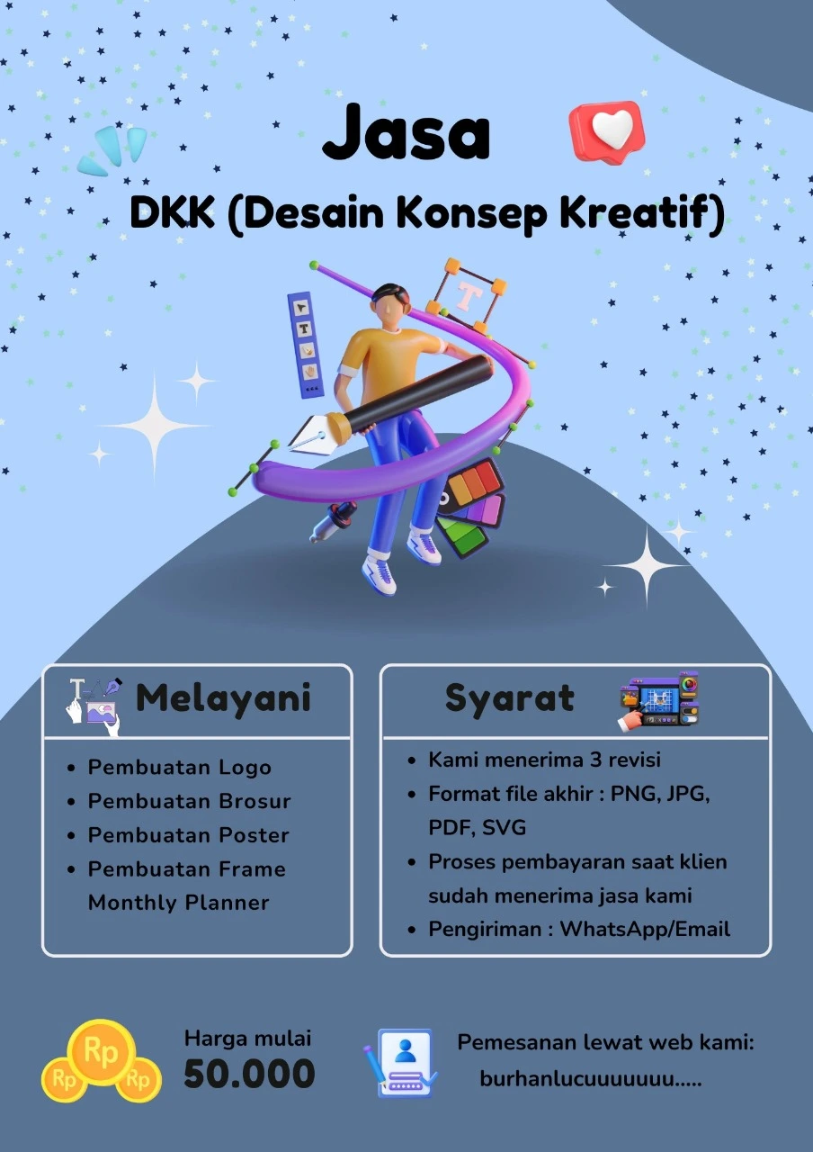 Selamat datang di DKK kami, tempat di mana kreativitas berpadu untuk memberikan solusi desain grafis terbaik bagi Anda! Kami adalah tim desainer yang berdedikasi untuk membantu mewujudkan ide dan kreativitas Anda dalam bentuk desain yang menarik dan berkualitas.